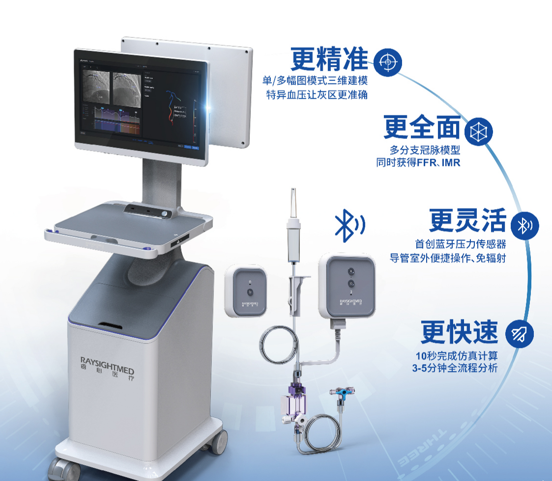 作為一站式冠脈宏觀+微觀功能學(xué)評估系統(tǒng),睿心冠狀動脈功能測量系統(tǒng)AngioQFA 100融合了睿心醫(yī)療自研的Ai、3D仿真與連通傳感器芯片技術(shù),可一站式獲得冠脈FFR和IMR測量分析結(jié)果,并且具備斑塊穩(wěn)定性評估及手術(shù)規(guī)劃的能力,在PCI全流程手術(shù)中提供精準(zhǔn)指導(dǎo)。同時,睿心冠狀動脈功能測量系統(tǒng)AngioQFA 100配置了一次性使用有創(chuàng)血壓傳感器,不僅計(jì)算精準(zhǔn)度顯著提升,而且相較同類產(chǎn)品覆蓋更豐富病變類型。前瞻性臨床研究表明:睿心冠狀動脈功能測量系統(tǒng)AngioQFA 100的FFR、IMR測量結(jié)果與有創(chuàng)金標(biāo)準(zhǔn)結(jié)果一致性良好,準(zhǔn)確性、敏感性、特異性均高達(dá)95%以上,領(lǐng)先行業(yè),為臨床提供了更可靠、精準(zhǔn)、高效、全面的決策支持。