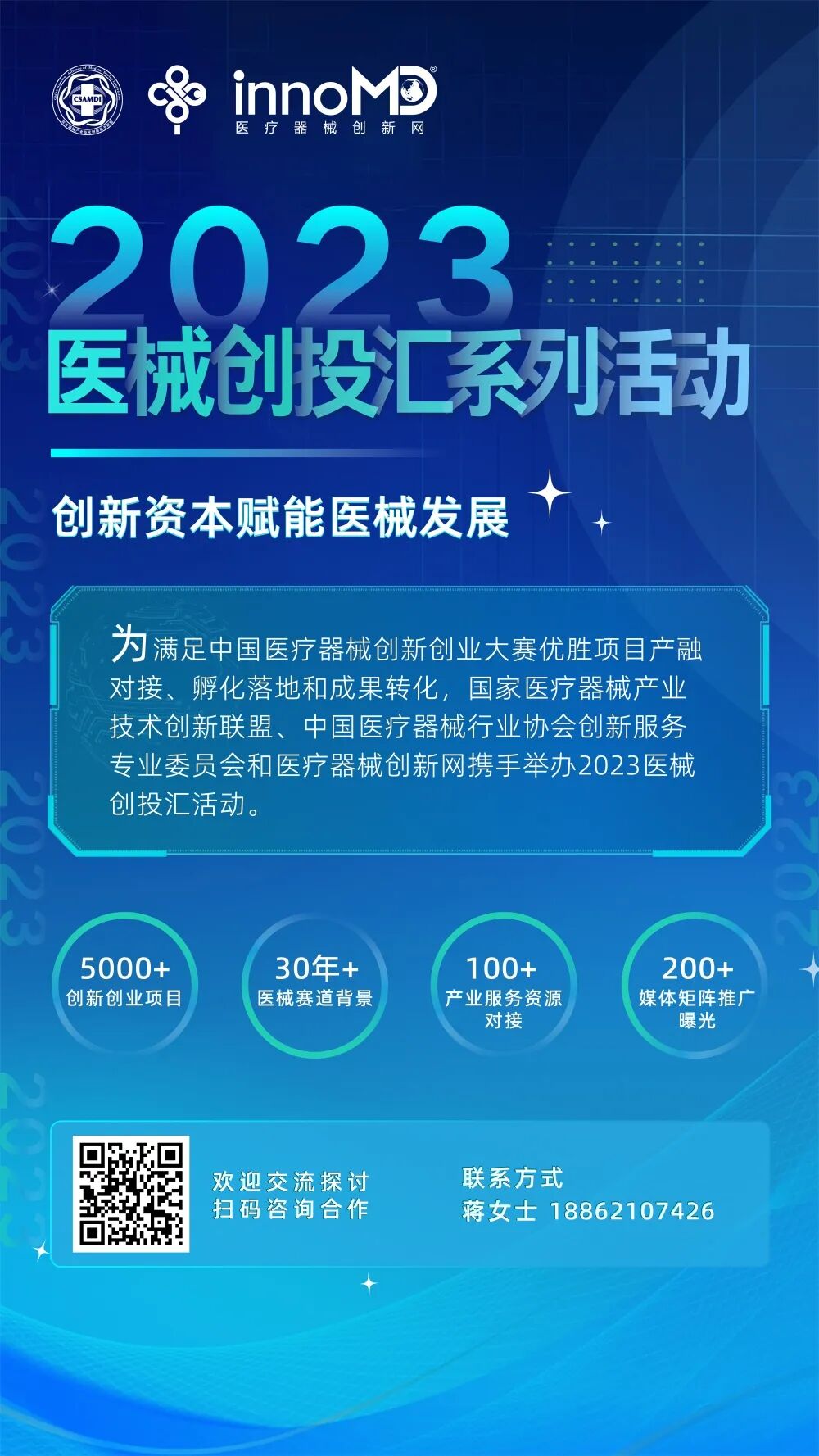 為滿足中國(guó)醫(yī)療器械創(chuàng)新創(chuàng)業(yè)大賽優(yōu)勝項(xiàng)目產(chǎn)融對(duì)接、孵化落地和成果轉(zhuǎn)化,國(guó)家醫(yī)療器械產(chǎn)業(yè)技術(shù)創(chuàng)新聯(lián)盟、中國(guó)醫(yī)療器械行業(yè)協(xié)會(huì)創(chuàng)新服務(wù)專業(yè)委員會(huì)和醫(yī)療器械創(chuàng)新網(wǎng)共同聯(lián)合舉辦“聚勢(shì)共贏·創(chuàng)投相伴 ”2023醫(yī)械創(chuàng)投匯系列活動(dòng)。