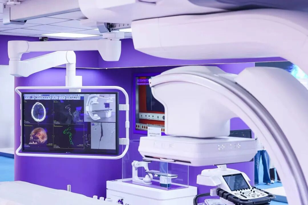 這款碳纖維大孔徑介入“航母”,不僅在硬件上實(shí)現(xiàn)優(yōu)化升級(jí),而且深度融合AI全流程技術(shù),軟硬件雙管齊下,直擊傳統(tǒng)介入手術(shù)空間受限、線纜干擾、操作繁瑣、引導(dǎo)不精準(zhǔn)等臨床痛點(diǎn),實(shí)現(xiàn)從 “看清” 到 “預(yù)見” 的革命性跨越,為健康中國建設(shè)注入硬核科技力量。