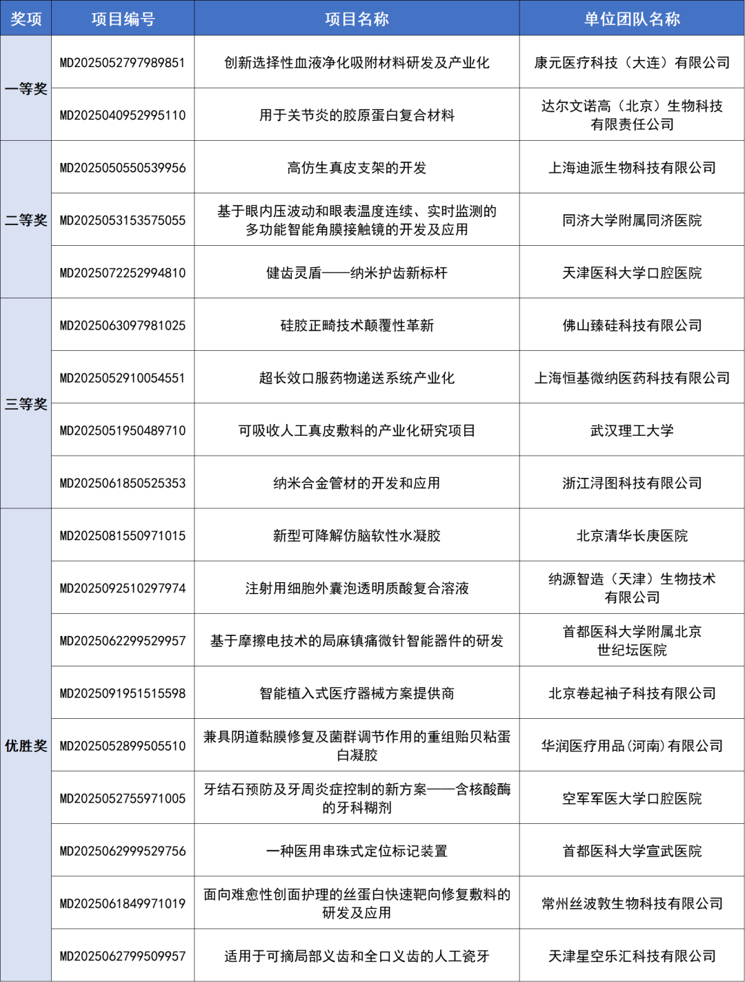 高值醫(yī)用耗材類(lèi)別賽獲獎(jiǎng)名單