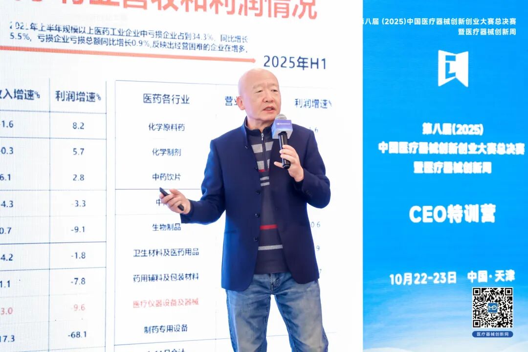 國家醫(yī)療器械產(chǎn)業(yè)技術(shù)創(chuàng)新聯(lián)盟理事長、中國醫(yī)療器械行業(yè)協(xié)會常務(wù)副會長姜峰會長作為主講人向參會人員解讀了全球醫(yī)械產(chǎn)業(yè)格局及近年國內(nèi)外產(chǎn)業(yè)發(fā)展現(xiàn)狀,分析了醫(yī)療器械創(chuàng)新審批與創(chuàng)新產(chǎn)品上市態(tài)勢。結(jié)合當前產(chǎn)業(yè)政策調(diào)整、市場競爭加劇的背景,他剖析了初創(chuàng)企業(yè)面臨的機遇與挑戰(zhàn),從企業(yè)定位、技術(shù)創(chuàng)新方向、產(chǎn)業(yè)鏈協(xié)同、政策借力等維度,分享了對醫(yī)械初創(chuàng)企業(yè)的戰(zhàn)略思考,為企業(yè)制定差異化戰(zhàn)略提供系統(tǒng)性思路,助力找準發(fā)展賽道。