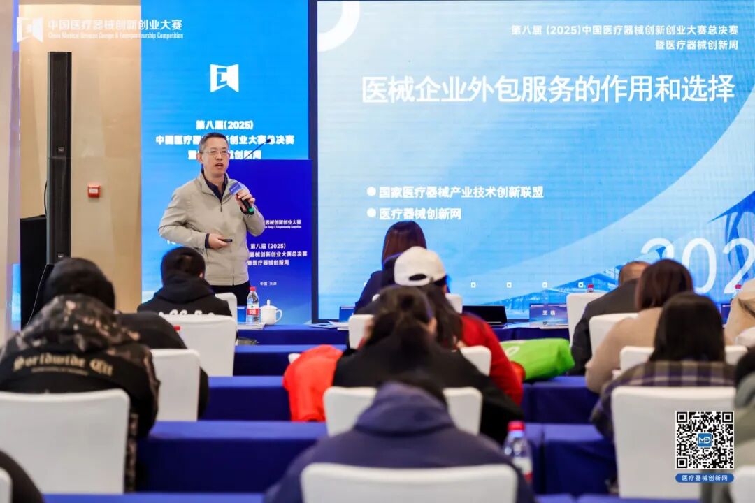 浙江國創(chuàng)醫(yī)療器械有限公司總經(jīng)理王臨聚焦醫(yī)械企業(yè)外包服務(wù)展開分享。他先闡述了外包服務(wù)在降本增效、專業(yè)賦能、靈活適配、風險管控方面的核心優(yōu)勢,同時詳解了依托行業(yè)聯(lián)盟、協(xié)會及部委支持,以創(chuàng)新網(wǎng)和創(chuàng)新創(chuàng)業(yè)大賽為核心載體,整合多地實體基地、資本及行業(yè)資源,提供研發(fā)、生產(chǎn)、融資、出海等全生命周期服務(wù)(涵蓋企業(yè)創(chuàng)新創(chuàng)業(yè)、機構(gòu)合作、特色創(chuàng)業(yè)培訓等)的平臺體系,并且為企業(yè)選擇外包服務(wù)給出了針對性建議。