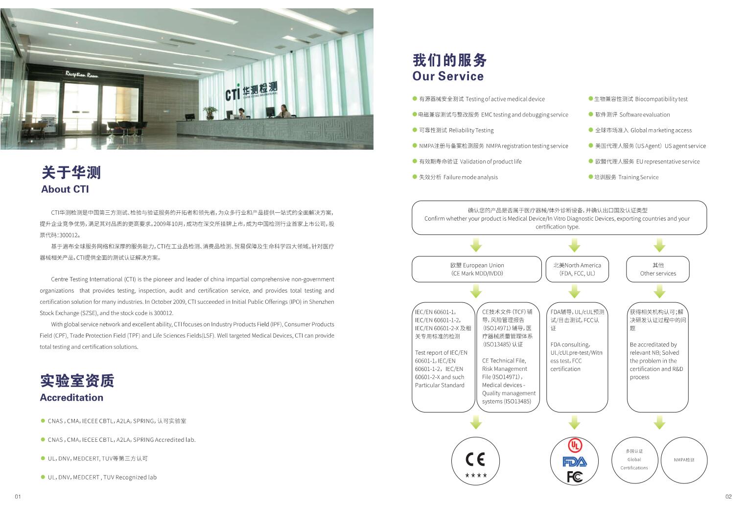 2013年,CTI成為歐盟NB認(rèn)證機(jī)構(gòu);2015年,CTI入圍國(guó)家強(qiáng)制性產(chǎn)品認(rèn)證(CCC)指定實(shí)驗(yàn)室;同年,新加坡華測(cè)成為發(fā)證/認(rèn)可NCB,深圳實(shí)驗(yàn)室獲得CBTL資質(zhì)。CTI是中國(guó)合格評(píng)定認(rèn)可委員會(huì)(CNAS)認(rèn)可的實(shí)驗(yàn)室和中國(guó)質(zhì)量認(rèn)證中心(CQC)的合作實(shí)驗(yàn)室,同時(shí)通過了計(jì)量認(rèn)證(CMA),完全具備出具第三方檢測(cè)報(bào)告的資質(zhì)。除了通過國(guó)內(nèi)的認(rèn)可以外,CTI還通過了英國(guó)UKAS,美國(guó)ANSI、美國(guó)"能源之星"、新加坡SPRING等機(jī)構(gòu)的認(rèn)可,是美國(guó)消費(fèi)者委員會(huì)(CPSC)、美國(guó)UL、美國(guó)FCC、加拿大IC、墨西哥NYCE、挪威NEMKO、德國(guó)TUV、美國(guó)紡織品染化師協(xié)會(huì)(AATCC)、美國(guó)WRAP等國(guó)際權(quán)威機(jī)構(gòu)授權(quán)合作的實(shí)驗(yàn)室,檢測(cè)報(bào)告具有國(guó)際公信力。 作為國(guó)際化、多元化的專業(yè)檢測(cè)認(rèn)證機(jī)構(gòu),CTI有自我超越的勇氣,立志成為具有前瞻眼光的行業(yè)領(lǐng)跑者。