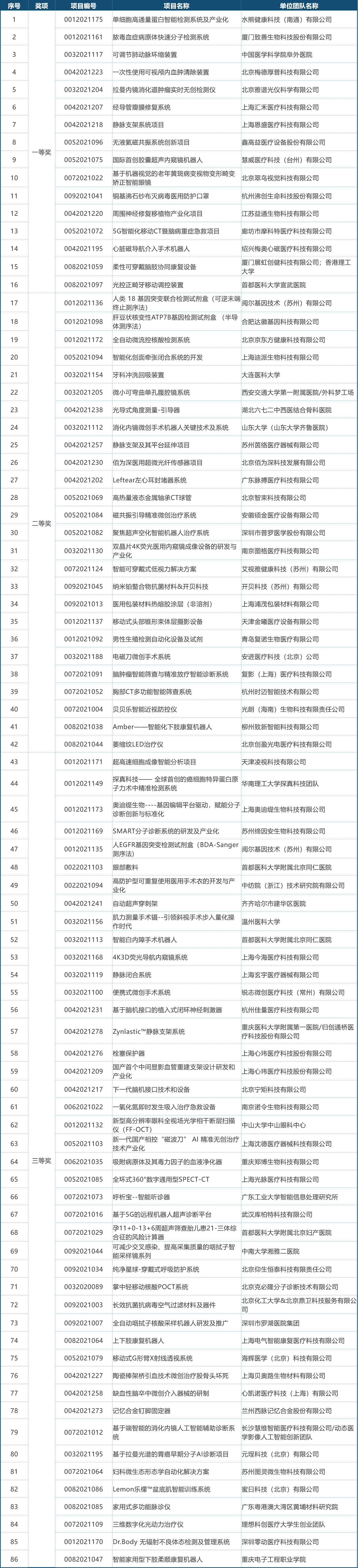 第四屆(2021)中國(guó)醫(yī)療器械創(chuàng)新創(chuàng)業(yè)大賽決賽獲獎(jiǎng)名單