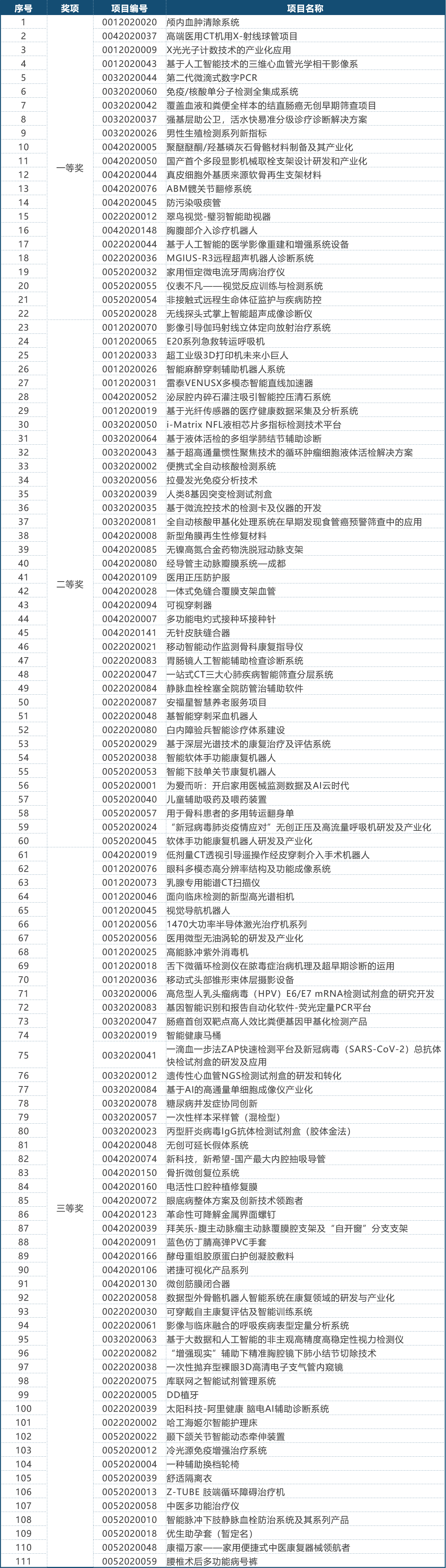 第三屆(2020)中國醫(yī)療器械創(chuàng)新創(chuàng)業(yè)大賽決賽獲獎名單